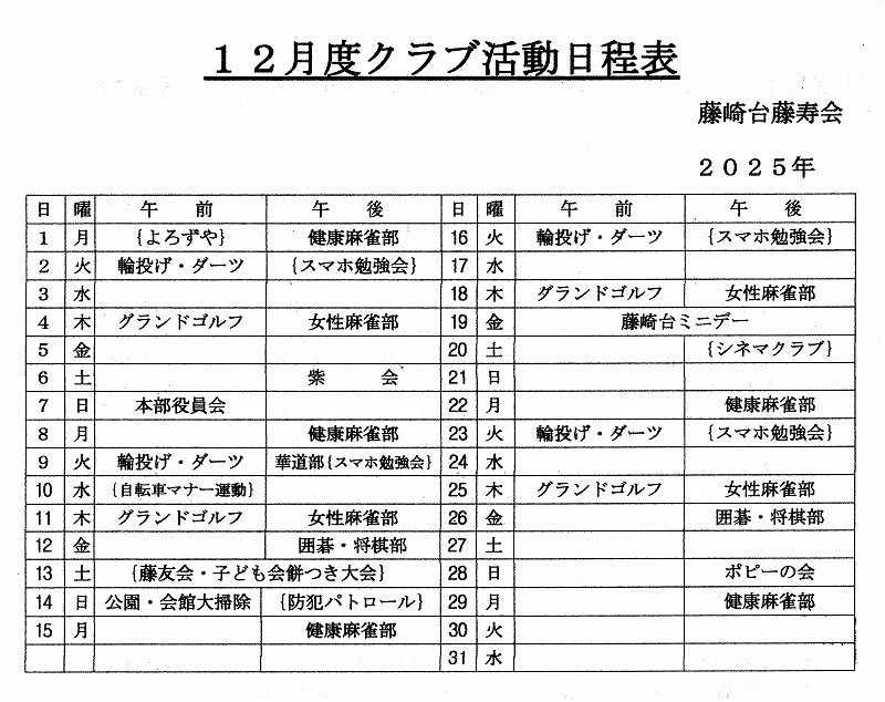 | 2025/10/07 | 11月予定表を追加及びR07年度旅行会集合写真を更新した | |