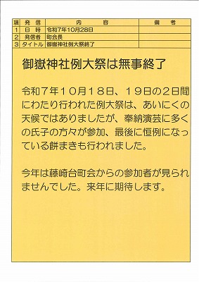 | 2025/10/210 | Topics.掲示板.シネマ、船橋元気ウォークを追加しました | 検索件数3,338 |