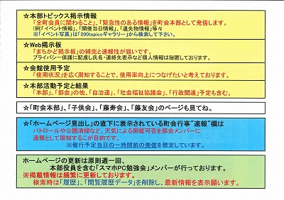 町会本部 110町会組織と活動 120部会の活動 130各種団体の活動 |